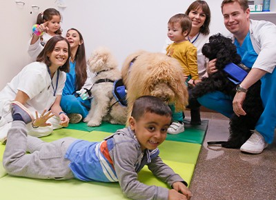 El Australian Cobberdog es la raza con la que trabajamos en nuestras intervenciones asistidas con perros. Es la única raza del mundo desarrollada como perro de terapia y asistencia. Es un perro hipoalergénico y con una gran inteligencia para aprender cómo hacer su trabajo y está disponible en 4 tamaños. Además muestra una gran sensibilidad con los niños y mayores. Por sus aspecto, el Australian Cobberdog consigue una alta aceptación entre todos los usuarios y al ser hipoalergénico y no perder pelo es aceptado en la mayoría de centros y hospitales.